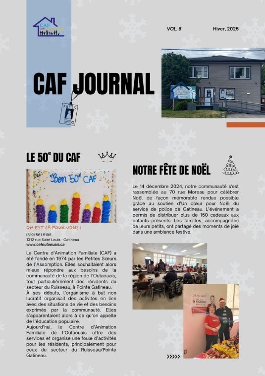 Le Centre d’Animation Familiale (CAF) offre de nombreux services et activités aux résidents de l’Outaouais.